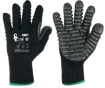Popis: Pletené rukavice s antivibračními polštářky z pěnového latexu v dlani, pružná manžeta. Doporučené aplikace: práce s vibračním nářadím, údržba zeleně, práce s motorovou pilou, silniční vrtačky, ponorné vibrační stroje, brusky.