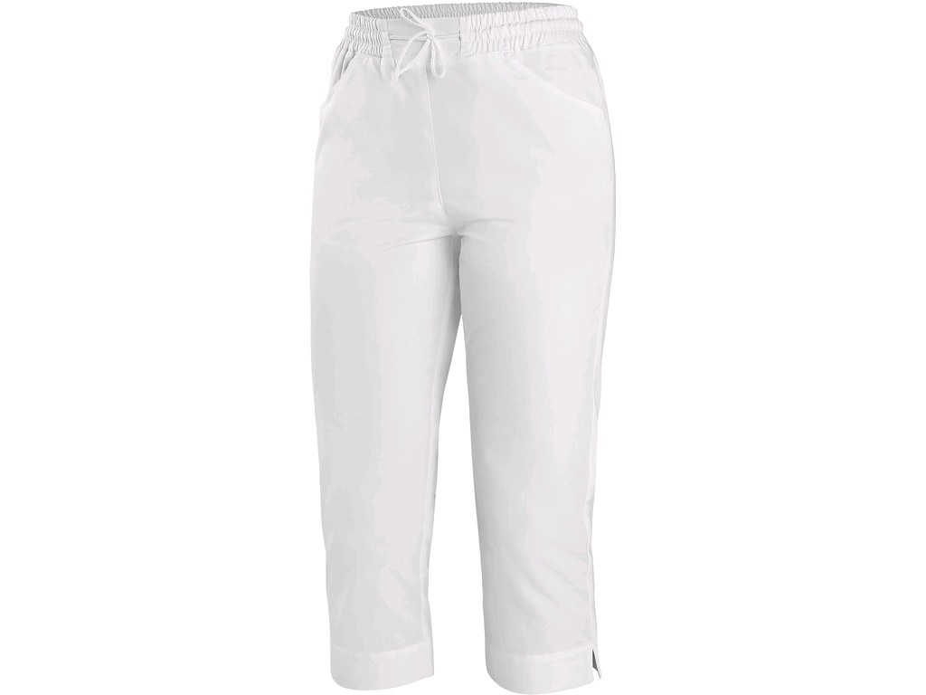 Popis: dámské pohodlné 3/4 kalhoty, pas do gumy se šněrováním, 2 přední prostorné klínové kapsy, nohavice do manžety s rozparkem. Doporučené použití: soukromé ordinace, kliniky a velká zdravotnická zařízení, záchranné a zdravotní dopravní služby, lázeňská zařízení, ústavy sociální péče, lékárny, školy se zdravotnickým a gastro zaměřením.