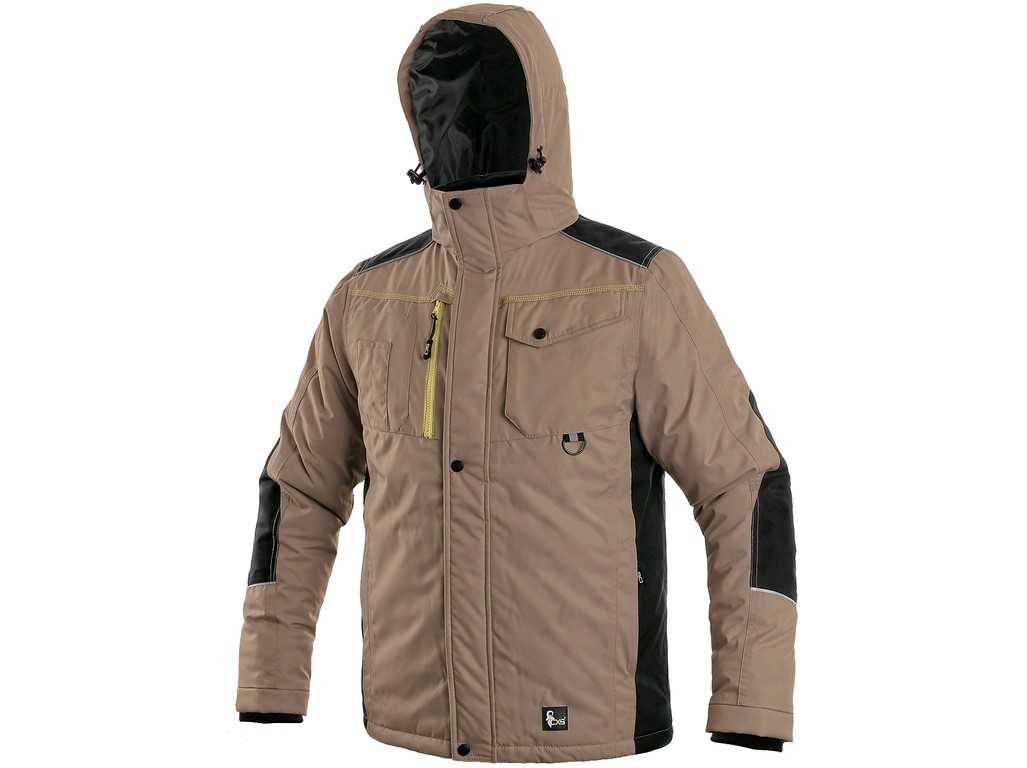 Popis: pánská zateplená bunda, odolná proti vodě a větru, odepínací kapuce, vnitřní manžety v rukávech, plastové poutko pod svrchní kapsou, stahování v dolním okraji, lepené švy, TPU membrána, reflexní doplňky. Náprsní kapsy na zip nebo druky, dvě spodní kapsy na zip, 3 vnitřní kapsy.