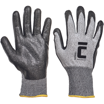 Popis: Protipořezové rukavice s dlaněmi a prsty máčenými v polyuretanu. Odolnost proti řezu 3.
