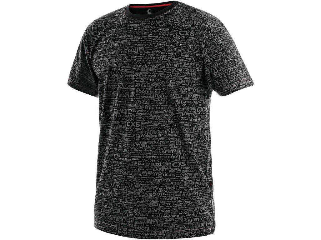 Popis: Tričko s krátkým rukávem, kulatý průkrčník se zdvojenými švy. Na rukávech a spodním lemu jsou použity švy v červené barvě. Zpevňující krční páska také v červené barvě. Tričko je označeno logem naší obchodní značky na rukávu a v bočním švu všitým štítkem. Látka je celoplošně potištěna s finální silikonovou úpravou materiálu, která zajišťuje vyšší měkkost a pružnost, rozměrovou stálost a omezuje žmolkovatění.