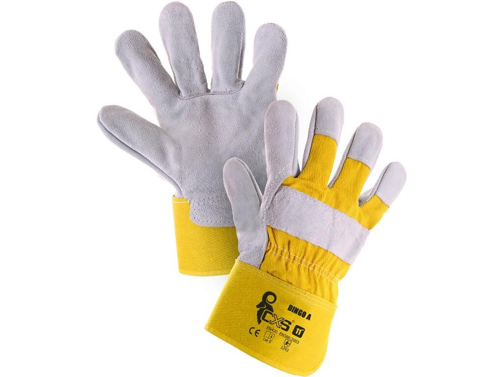 Materiál: dlaň - hovězí štípenka, hřbet - hrubá bavlněná tkanina