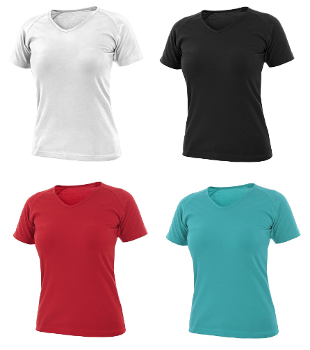 Popis: dámské tričko s průkrčníkem do V. Krátký rukáv raglánového typu. Střih zvýrazňující dámskou postavu a elastan pro pružnost a dlouhodobé udržení tvaru. Finální silikonová úprava materiálu, která zajišťuje vyšší měkkost, rozměrovou stálost a omezuje žmolkovatění. Saténová etiketa. Vhodné pro potisk a výšivku.