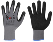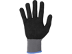Popis: Bezešvé rukavice z jemného polyesterového úpletu s dlaněmi a prsty povrstvenými směsí pěnového nitrilu a polyuretanu na vodní bázi s pískovou úpravou pro lepší úchop, pružný náplet.