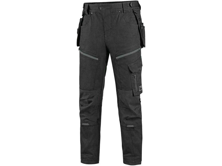 Popis: Pánské pracovní kalhoty moderního střihu slim-fit. Kombinace kvalitního směsového materiálu s elastanem a 4-way stretch materiálu v exponovaných místech umožňuje volný a pohodlný pohyb. Vybavení kalhot: flexibilní pas s možností upravení velikosti a poutky na opasek, na vnitřní straně pasu protiskluzový potisk, 2 přední kapsy, 2 odnímatelné kapsy na nářadí vyztuženy materiálem CORDURA®, stehenní zipové kapsy s možností ventilace, boční kapsa se zipovou kapsou, 2 zadní kapsy (jedna zipová) vyztuženy materiálem CORDURA®, kapsa na skládací metr s dalšími přihrádkami, ergonomicky tvarovaná kolena zesílena materiálem CORDURA® s možností vložení kolenních výztuh bočním vkládáním a ventilací, kapsa na ID kartu, spodní část nohavic vyztužena materiálem CORDURA®, reflexní doplňky. Kalhoty umožňují prodloužení střihu na vyšší postavu uvolněním švu na nohavicích.