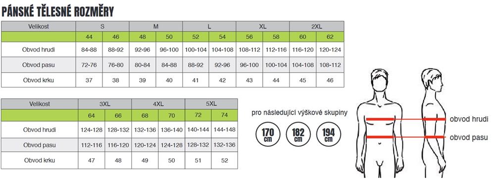 Tabulky velikostí ochranných pracovních oděvů, obuvi a rukavic.
