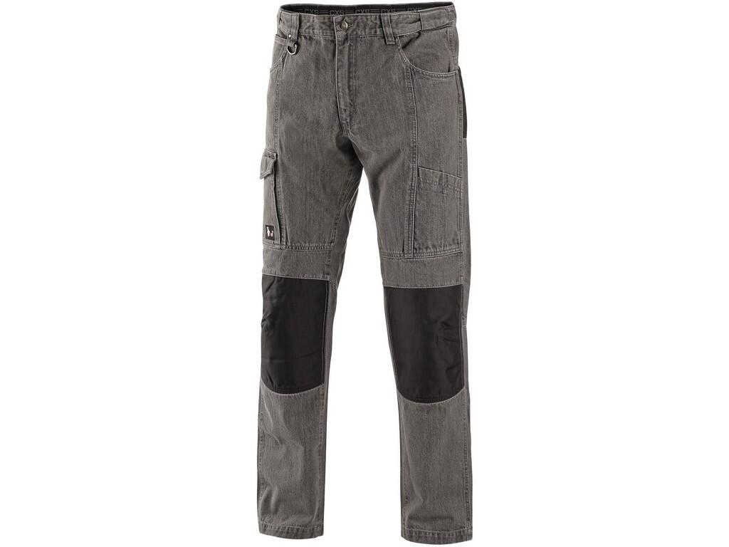 PPánské džíny, flexibilní pas s poutky na opasek a plastovým přívěskem, vnitřní protiskluzová gumová páska v pase, 2 přední kapsy, 2 zadní kapsy z materiálu CORDURA, boční multifunkční kapsy, na pravé kapse poutko pro kladivo, kolena zesílena materiálem CORDURA.