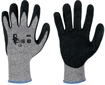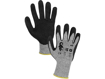 Pletené bezešvé rukavice s odolností proti řezu 3, dlaň a prsty povrstveny nitrilem s pískovou úpravou pro lepší úchop a manipulaci.
