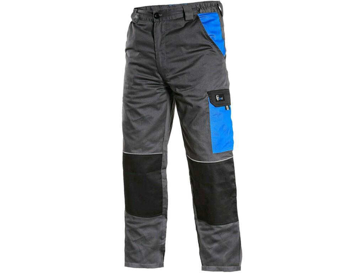 Pánské montérkové kalhoty z lehkého materiálu, pas s poutky na opasek a gumou v bocích, přední klínové kapsy, boční kapsa s klopou, kapsa na skládací/svinovací metr, zdvojená kolena, zadní jednoduchá kapsa, reflexní doplňky. Díky odlehčené gramáži vhodné pro práci nejen v letním období, ale také celoročně ve vytápěných provozech.