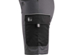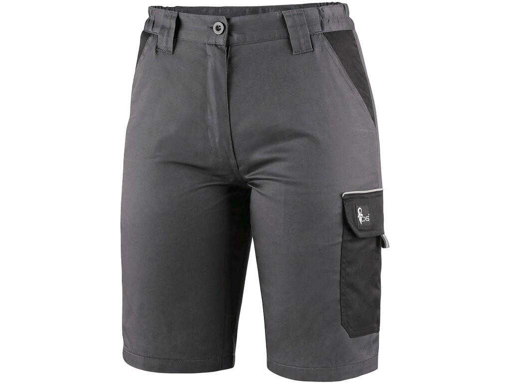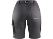 Dámské montérkové kraťasy z lehkého materiálu, pas s poutky na opasek a gumou v bocích, přední klínové kapsy, boční kapsa s klopou, kapsa na skládací/svinovací metr, zadní jednoduchá kapsa na pravé straně, reflexní doplňky.