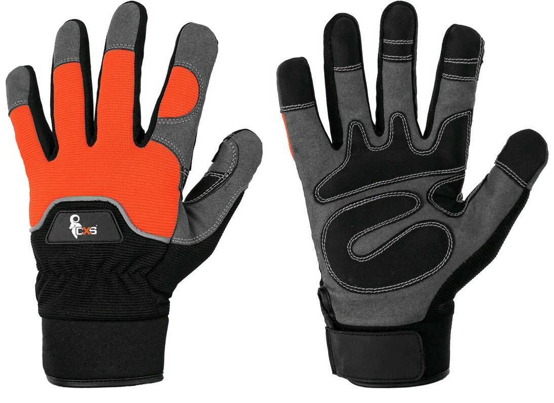 Popis: Kombinované rukavice s reflexním výpustkem na hřbetu, pohodlné a odolné vůči srážení, natahování a tvrdnutí. Polyuretanové výstelky v dlani pomáhají tlumit otřesy, nárazy a vibrace. Ve svrchní části prodyšný Spandex, v dlani viskoza (syntetická kůže). Neoprenová manžeta se suchým zipem se snadno přizpůsobí zápěstí.