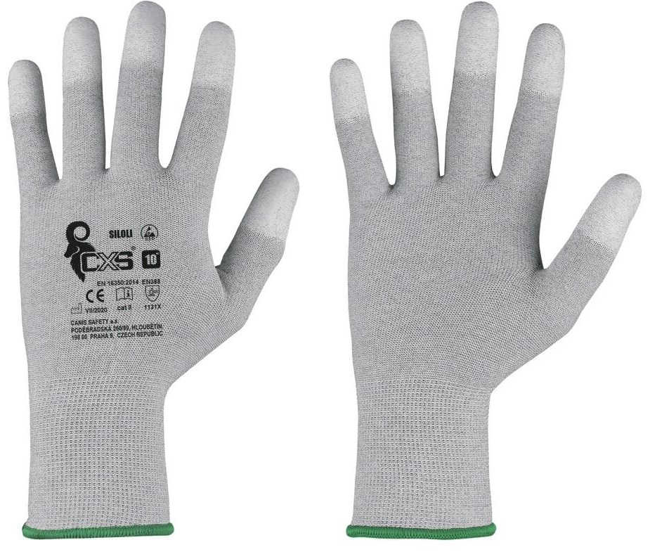 Popis: Pletene bezešve rukavice, antistaticke a ESD, konce prstů povrstveny polyuretanem, pružna manžeta. Vnitřni odpor – vysledek: Rv<1,0 x 108 Ω.