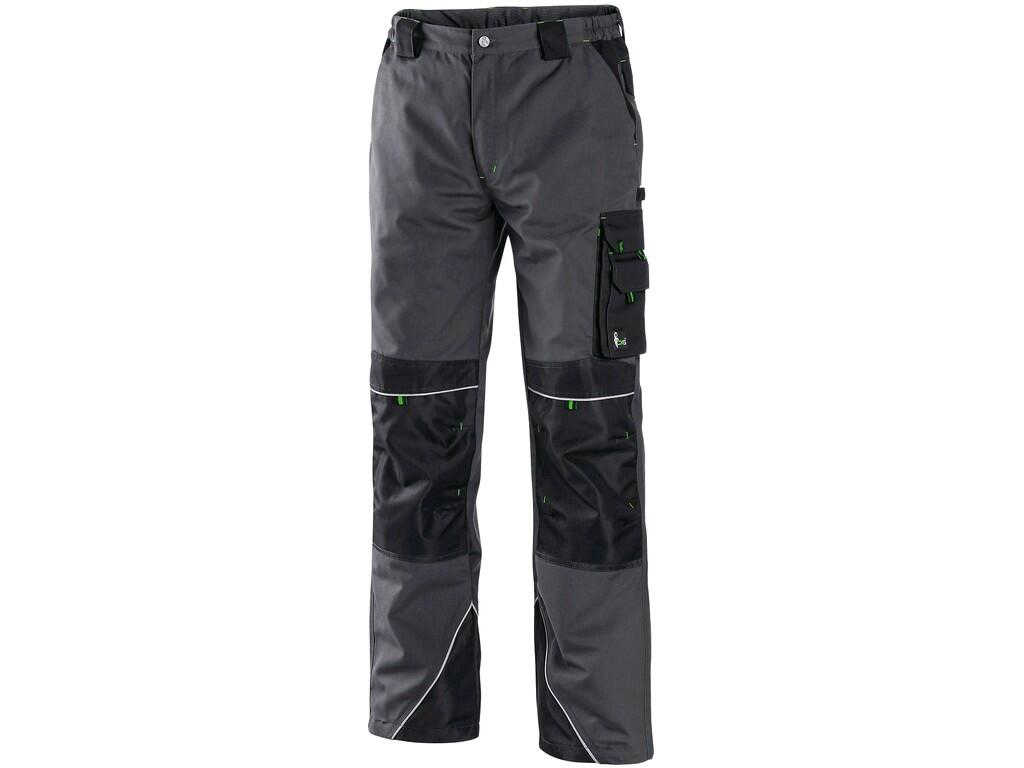 Pánské montérkové kalhoty, pas s poutky na opasek a gumou v bocích, přední klínové kapsy, multifunkční kapsy na obou stranách, kolena zesílena materiálem 600D polyesterem s možností vložení kolenních výztuh, dvě zadní kapsy s klopami, spodní část nohavic vyztužena materiálem 600D polyester, reflexní doplňky.