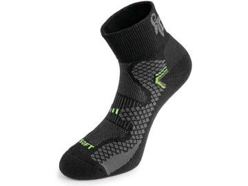 Elastické funkční ponožky určené pro profesní, sportovní a volnočasové aktivity, se sníženým lemem, odvádí vlhkost od chodidla, zmírňují pocit chladu.