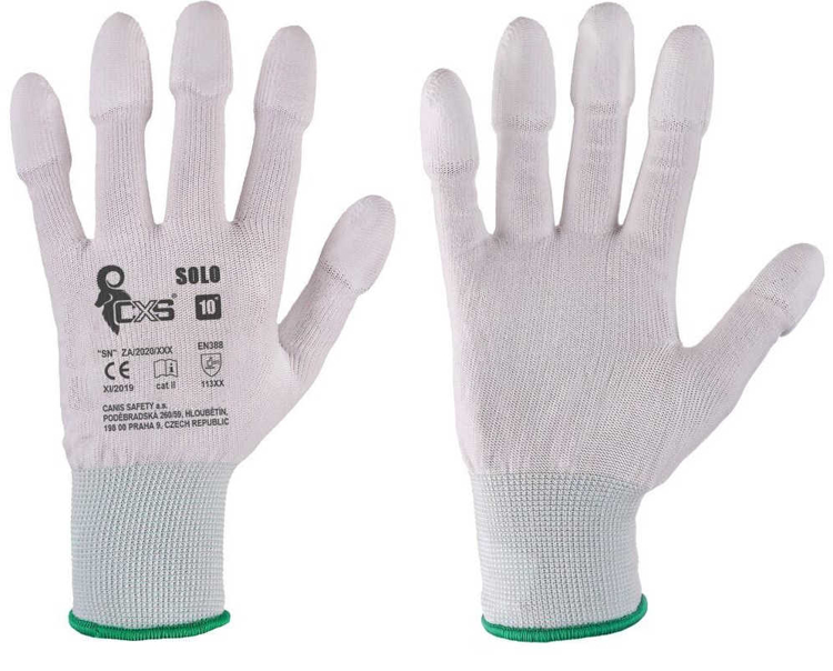 Popis: Rukavice s konci prstů máčenými v polyuretanu.