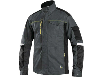 Popis: Pánská montérková blůza, strečová tkanina umožňující volný pohyb, ramena vyztužena 600D polyesterem, rukávy s nastavitelnou manžetou, kapsička s klopou na levém rukávu, kryté zapínání na zip a druky, náprsní kapsy - na druk a zip, boční kapsy na zip, regulovatelný pas, větrání na zádech, reflexní doplňky.