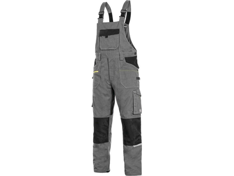 Popis: Pánské montérkové kalhoty s náprsenkou - zkrácená varianta na výšku 170-176 cm. Strečová tkanina umožňující volný pohyb, náprsní kapsa s klopou, pas s poutky na opasek, přední kapsy s kapsou na zip, multifunkční kapsy na obou stranách, kolena zesílena 600D polyesterem s možností vložení kolenních výztuh, dvě zadní kapsy - jedna s klopou, zadní spodní lem nohavice vyztužen 600D polyesterem, šle s gumou vzadu, reflexní doplňky.