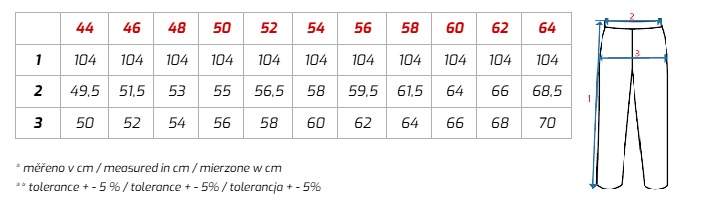 Parametry zboží Rozdělení: Pánské Gramáž: 250 g/m2 Normy: EN ISO 13688 Střih kalhot: Comfort Barevnost: tmavě šedo-černé Velikost: 46; 48; 50; 52; 54; 56; 58; 60; 62; 64; 44 Montérková kolekce: CXS STRETCH Značka: CXS Svrchní materiál: 98% bavlna 2% elastan Reflexní doplňky: Ano Délka produktu: Zkrácená velikost 170-176 cm OEKO-TEX® STANDARD 100: Ano Bezpečnostní informace: Výrobek musí být používán za účelem, za kterým byl vyroben.