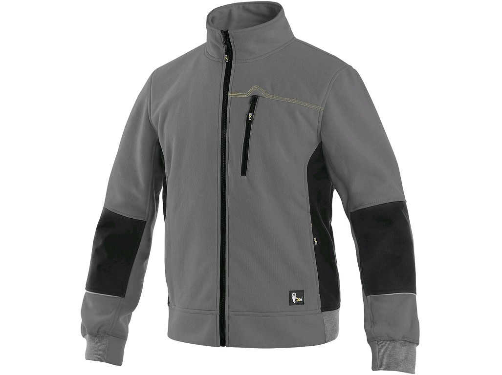 Popis: Pánská mikina na zip, pas a rukávy ukončeny pružnou manžetou, zesílené panely na loktech, náprsní kapsa na zip, boční kapsy na zip, reflexní doplňky.