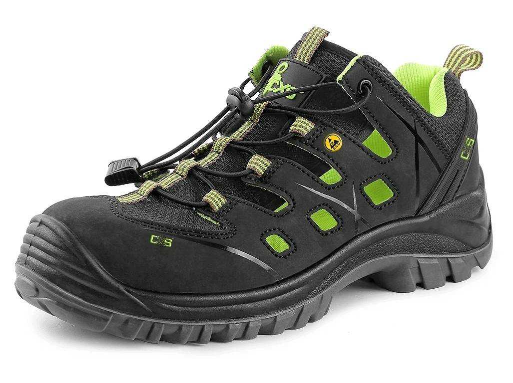 Parametry zbožíMateriálové složení: Svrchní materiál: štípenková nubuková kůže, Podešev: PU - PUNormy: EN ISO 20345:2022 S1PS FO SROchrana: S vyztuženou špičkou a podrážkouStupeň ochrany: S1PTyp obuvi: SandálZnačka: CXSReflexní doplňky: AnoESD Ochrana: ANO