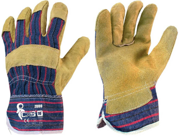 Materiál: dlaň - hovězí štípenka, hřbet a manžeta - bavlněná tkanina