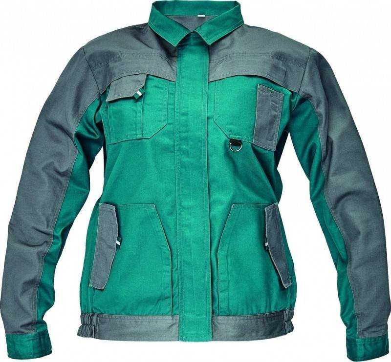 dámská pracovní bunda se zapínáním na zip krytým légou a pružným pasem; 2 přední kapsy s klopou; 2 multifunkční náprsní kapsy.
