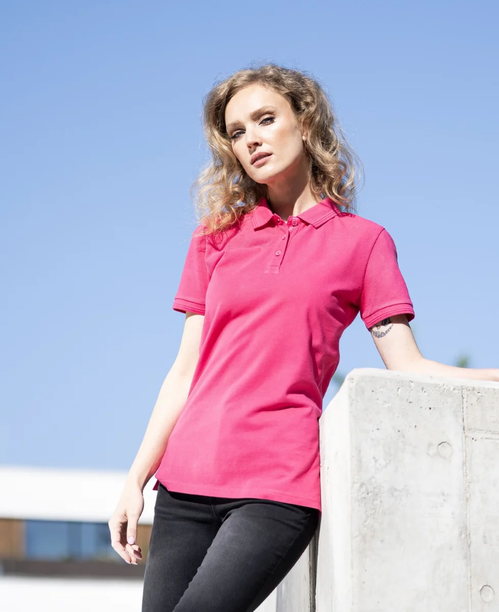 Dámská polokošile z předeprané bavlny, která je odolnější vůči seprání barev, zejména však omezuje srážení materiálu po vyprání. Polokošile v piké kvalitě je doplněna límcem s designovým prvkem použitým i na rukávovém lemu, knoflíková léga je zpevněná ozdobnou nášivkou, spodní lem s prodlouženým zadním dílem a bočními rozparky, moderní střih rukávů podtrhuje tvar ramen. Látka je zušlechtěna silikonovou úpravou, která zjemňuje povrch, dodává lesk a prodlužuje životnost výrobku. Polokošile je opatřena pouze malým velikostním štítkem všitým do průkrčníku a etiketou s informacemi o materiálu a údržbě. Jednobarevný ZERO LABEL design činí z polokošile ideální produkt pro reklamní textil i kreativní tvorbu vlastního designu.