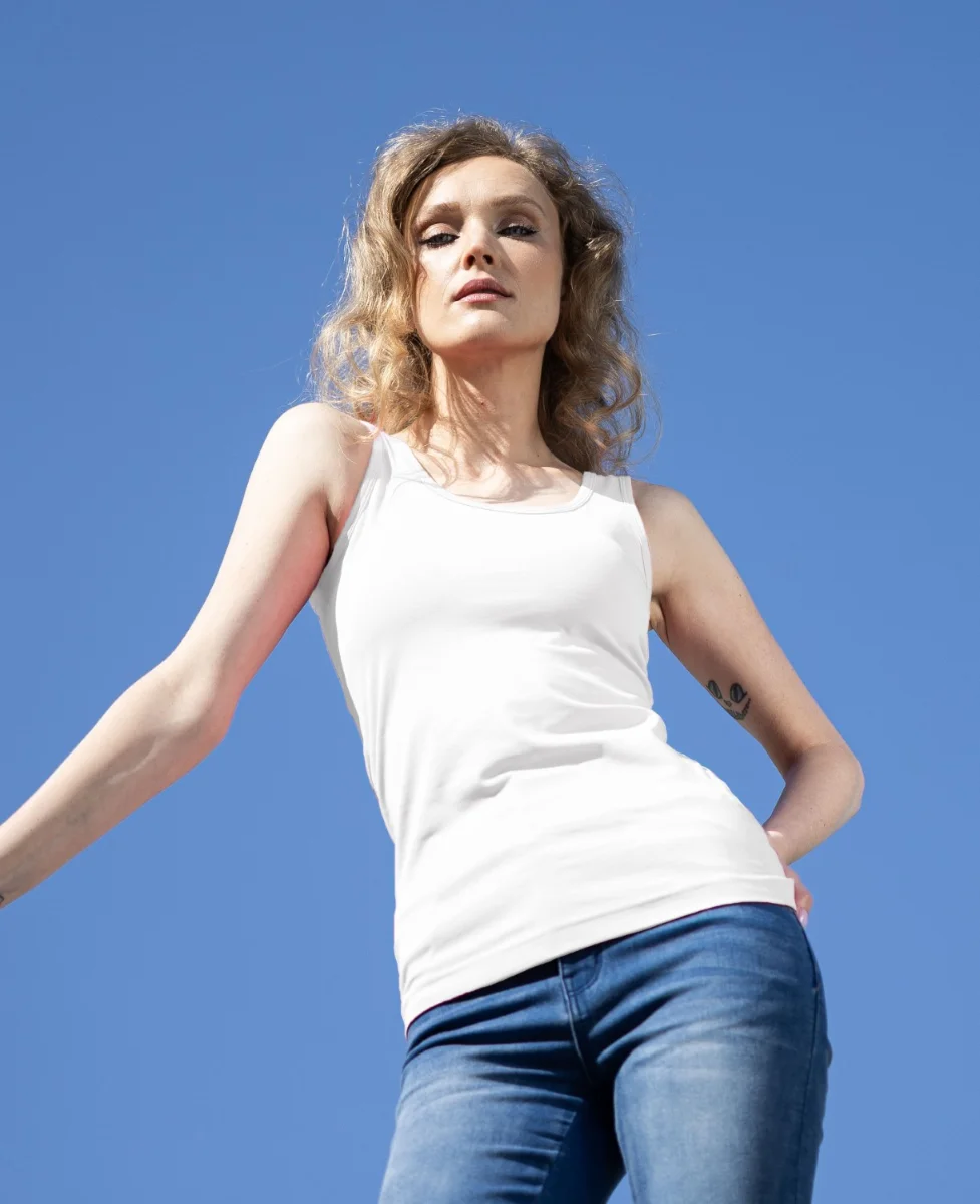 Dámský univerzální nátělník z příjemné bavlny všestranného využití, pružný, prodyšný, výborně kopíruje postavu, má široká ramínka, která se nezařezávají.