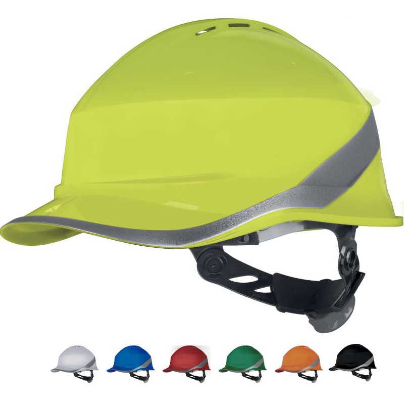 Bezpečnostní přilba s ventilací z ABS. Vylepšený tvar "baseballové kšiltovky" za účelem zlepšení vertikálního vidění. Testovaná pro nošení z obou stran s cílem snížení zatížení. Polyamidový vnitřní postroj: 3 textilní pásky s osmibodovým uchycením. Pěnový potní pás. Systém Rotor pro nastavení velikosti : obvod hlavy 53 až 64 cm. Dvě možné pozice popruhu (horní/dolní) pro vyšší komfort.