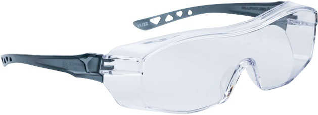 Popis: Ochranné polykarbonátové brýle jednočočkové. Boční ochrana. Integrovaný nosní polykarbonátový můstek. Poddajné polykarbonátové stranice. Vhodné pro použití v kombinaci se všemi typy dioptrických brýlí.