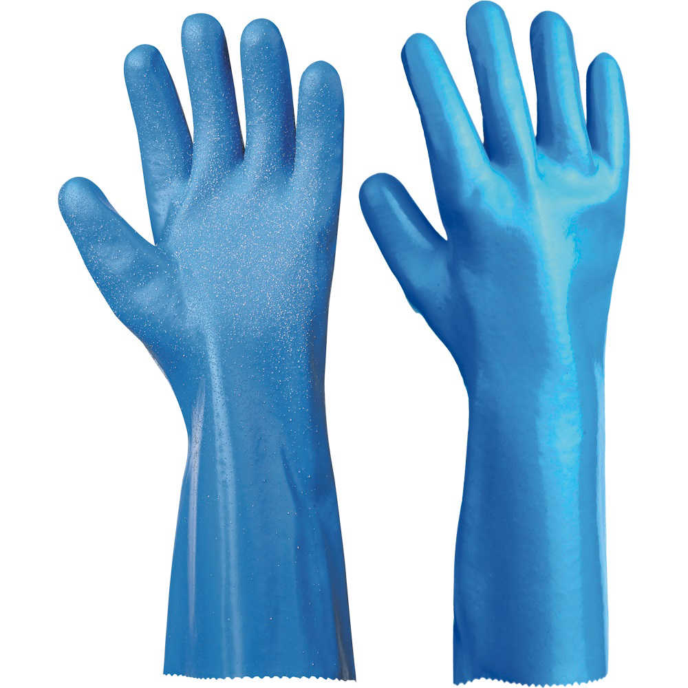 Šitý bavlněný úplet máčený v PVC s nitrilem, ochrana proti mechanickému a chemickému riziku, velikosti délka 40cm=10, (AS) s posypem v dlani