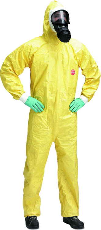 antistatická voděodolná kombinéza Tychem C (DuPont) s kapucí a přelepenými švy; odolná koncentrovaným anorganickým chemikáliím a ultra jemným částicím; patří do kategorie CE III, typu 3, 4, 5 a 6.
