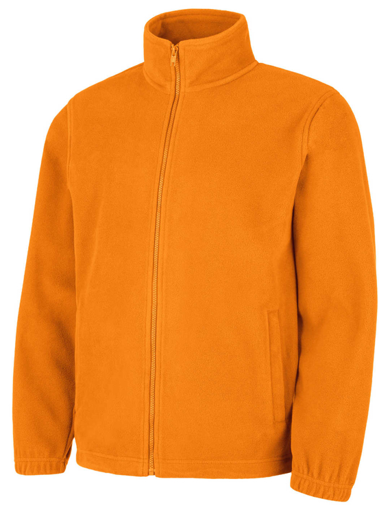Celopropínací unisexová fleecová mikina velmi pohodlného střihu, rukávy zakončeny pružnou lemovkou, dvě přední lištové kapsy uzavíratelné na zip antipillingová (protižmolkovací) úprava na vnější straně. Šíři spodního okraje je možné nastavit elastickou šňůrkou.Vhodná pro výšivku, gravírování.Velikosti: XS - 4XLBarva: oranžováMateriál: 100% polyester, antipilling polyester, micro fleece, 280 g/m2EN ISO 13688