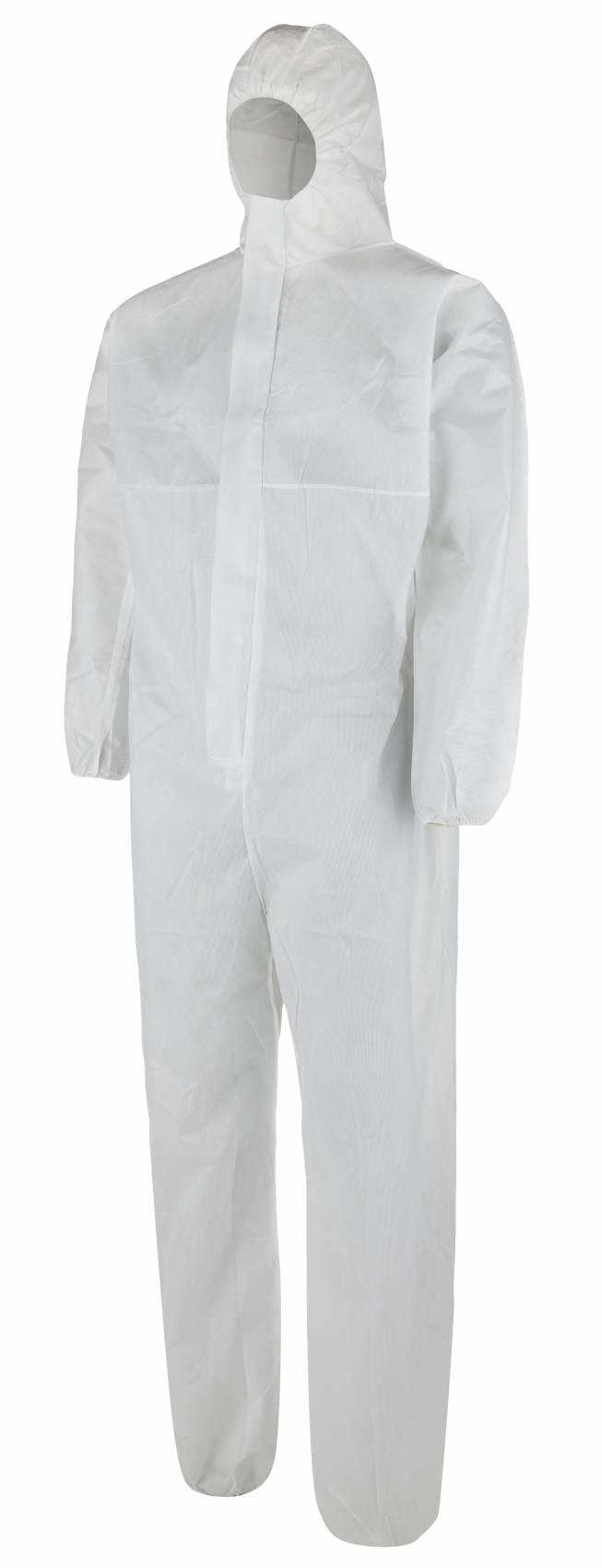 Overal Bocoro. Typ 5/6, CAT III. Prodyšný.Ochrana před škodlivými látkami. Ochrana citlivých výrobků před kontaminací člověkem. Ochrana proti jemným částicím prachu. Prodyšný, pohodlný. Ochranný prodyšný oděv s kapucí z netkané textilie - SMS. Rozšířený vyztužený rozkrok. Gumička ke stažení v kapuci, v zádech, na konci rukávu na konci nohavice. Celý overal (včetně švů a zipu) v bílé barvě.Ochranný oděv proti chemickým rizikůmEN ISO 13982-1: TYPE 5: Ochrana proti částicím (prachu)EN 13034: TYPE 6 Omezená ochrana proti postřiku kapalinamiEN ISO 13688Velikost: M - 4XLOchranná kategorie CE IIITyp ochranného oděvu Typ 5/6Ochrana proti prachu a potřísnění chemikáliemiPracovní činnosti: Manipulace / Přeprava / SkladováníMechanické práce a obsluha strojůBroušení & Leštění kovůOdpady / Odklízení / Úklid / ÚdržbaLehké průmyslové čištěníÚdržba ÚklidPráce v čistých provozechLaboratořeÚprava povrchu / Nátěry / Chemikálie