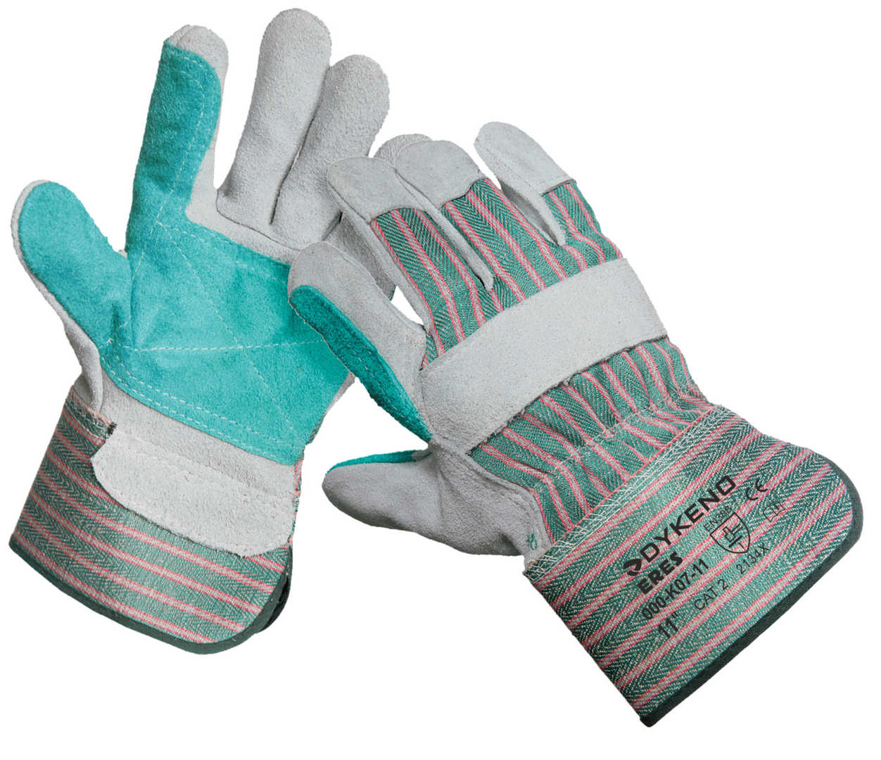 Z kvalitní měkké hovězí štípenky s tuhou manžetou. Zesílená vrstva kůže v dlani, bavlněná tkanina na hřbetu, kvalitní podšívka. Vysoká odolnost a dlouhá životnost. Rukavice mají zesílenou dlaň, palec a ukazovák, podšívka na dlani a prstech, vyztužená látková pogumovaná manžeta. Díky technologii DYKENO Strong mají rukavice vysokou odolnost proti mechanickému zatížení a dlouhou životnost.Ideální pro středně těžká prostředí, stavebnictví, strojírenství, zemědělství. Údržbářské práce aj.Velikost: 11EN 388: 2134XKategorie II