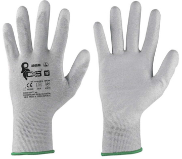 Textilní rukavice z polyesteru s úpletem z uhlíkového antistatického vlákna. Polyuretanové povrstvení dlaně a prstů. Komfortní pružná manžeta. Zajišťují vynikající odolnost proti oděru, optimální pohodlí. Vysoká kvalita je samozřejmostí.