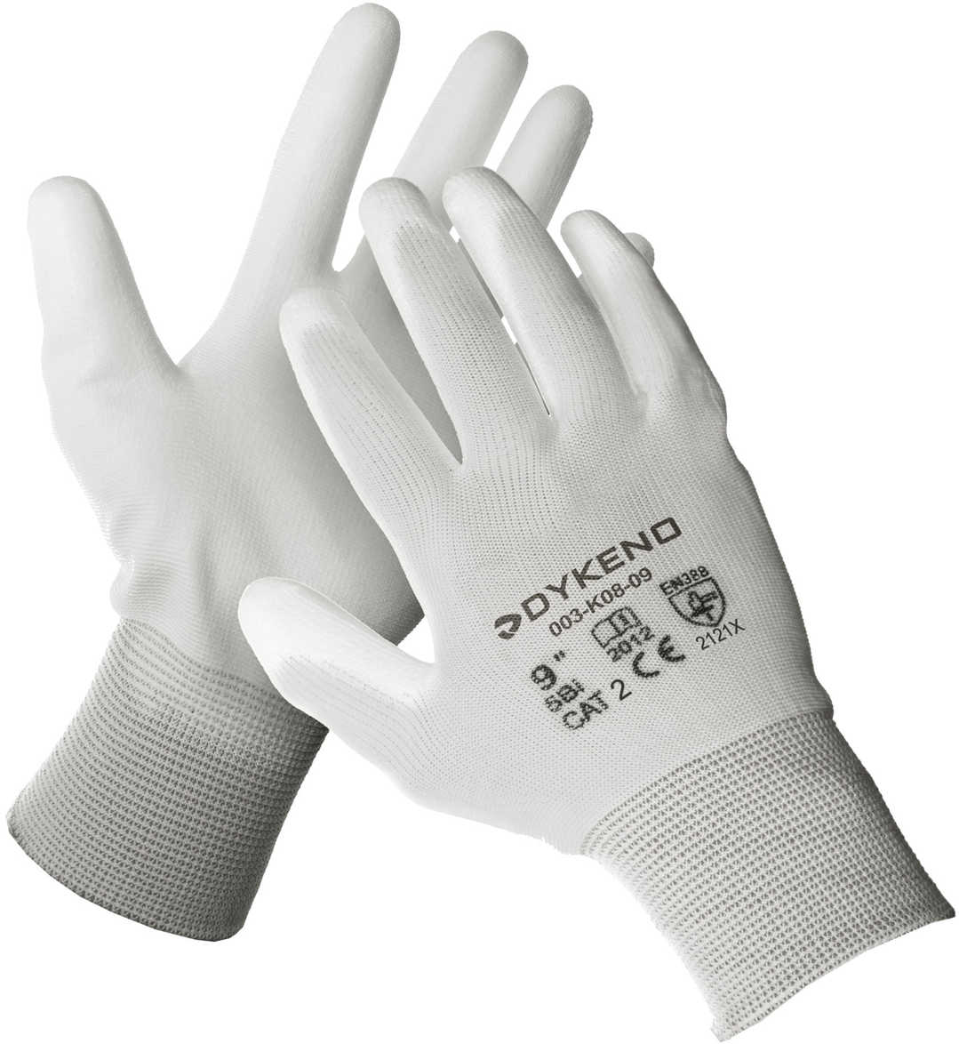 Z jemného nylonu, mají pružnou manžetou, dlaň a prsty jsou pokryté tenkou vrstvou polyuretanu. Jsou skvělé do lehkého průmyslu, automobilového průmyslu, pro montážní práce atd.Manipulace s malými předměty. Montážní práce v suchém a lehce zaolejovaném prostředí. Montáž a balení malých součástek.Výborné pro montážní práce, skvělá odolnost proti oděru díky vrstvě Dykeno Grip. Tenká vrstva polyuretanu zajišťuje jedinečný cit a úchop díky materiálu Dykeno Ergonic, zároveň má komfortní prodyšnost díky Dykeno Air.Velikost: 6 - 11EN 388: 2121XKategorie II