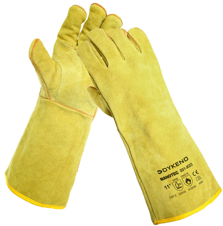 Silná impregnovaná kvalitní hovězí kůže. Podšívka v celé délce rukavic. Plně kryté švy. Šité kevlarovou nití. Vyztužené palce pro MIG svařování. Poskytují dobrou mechanickou odolnost, optimální pohodlí, skvělý úchop. Celková délka 35 cm. Ochrana před kontaktním teplem. Vysoká odolnost proti oděru a propichu.DYKENO Weld, ideální svářecí rukavice.Velikost: 11EN 388: 3233XEN 407: 413X3XEN 12477: typ AKategorie II