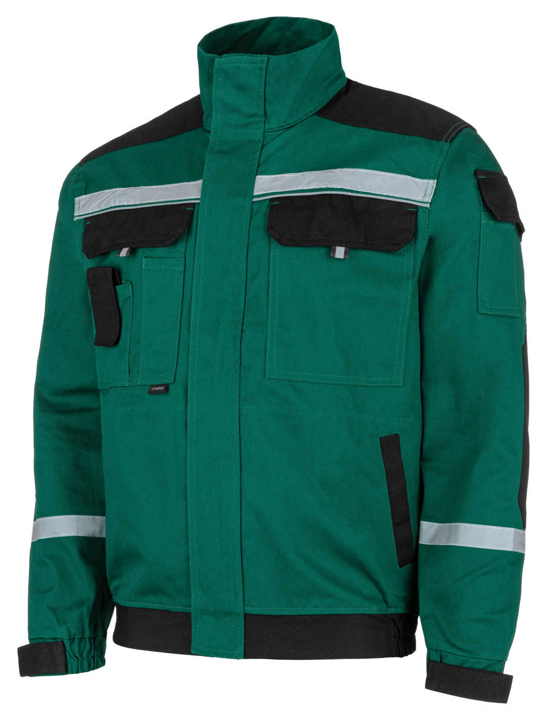 Montérková bunda vysoké kvality s multifunkčními kapsami. Náprsní kapsy, kapsa na mobil a tužku. Kapsička na rukávu, kapsy v bocích na suchý zip. Pracovní bunda Primo má navíc našité reflexní doplňky a to jak na předním, tak zadním dílu. Vnitřní kryté švy. Celopropínací zip krytý légou, u krku navíc suchý zip. Konce rukávů jsou regulovatelné suchým zipem. Na bocích pružná guma. Velkou výhodou jsou zesílená ramena a lokty.náprsní kapsy, kapsa na mobil a tužkukapsička na rukávu, kapsy v bocích na suchý zipreflexní pruhyvnitřní krytí švůcelopropínací zip krytý légou, u krku navíc suchý zipkonce rukávů jsou regulovatelné suchým zipemna bocích pružná gumazesílená ramena a loktyVelikosti: 42 - 68Barva: zelená-černáMateriál: 100% bavlna, 270 g/m2EN ISO 13688