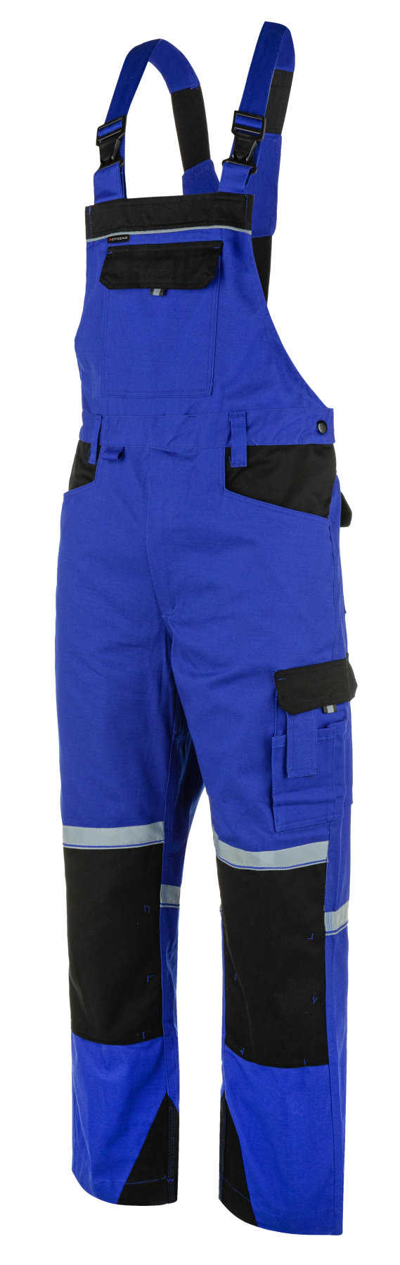 Montérky mají multifunkční kapsy vč. náprsenky. Jejich střih je moderní a velmi pohodlný. Kapsa na metr, poutko na kladivo. Reflexní pásky jsou samozřejmostí. Zesílená kolena a kapsy pro nákoleníky. Zdvojená látka a prošití sedu zajišťují delší životnost pracovních kalhot s laclem.multifunkční kapsy včetně náprsenkymoderní a velmi pohodlný střihkapsa na metrreflexní pruhypoutko na kladivozesílená kolena a kapsy pro nákoleníkyzdvojená látka a prošití seduvnitřní krytí švůpoutka v pase, v pase na gumuVelikosti: 42 - 68Barva: modrá-černáMateriál: 100% bavlna, 270g/m2EN ISO 13688