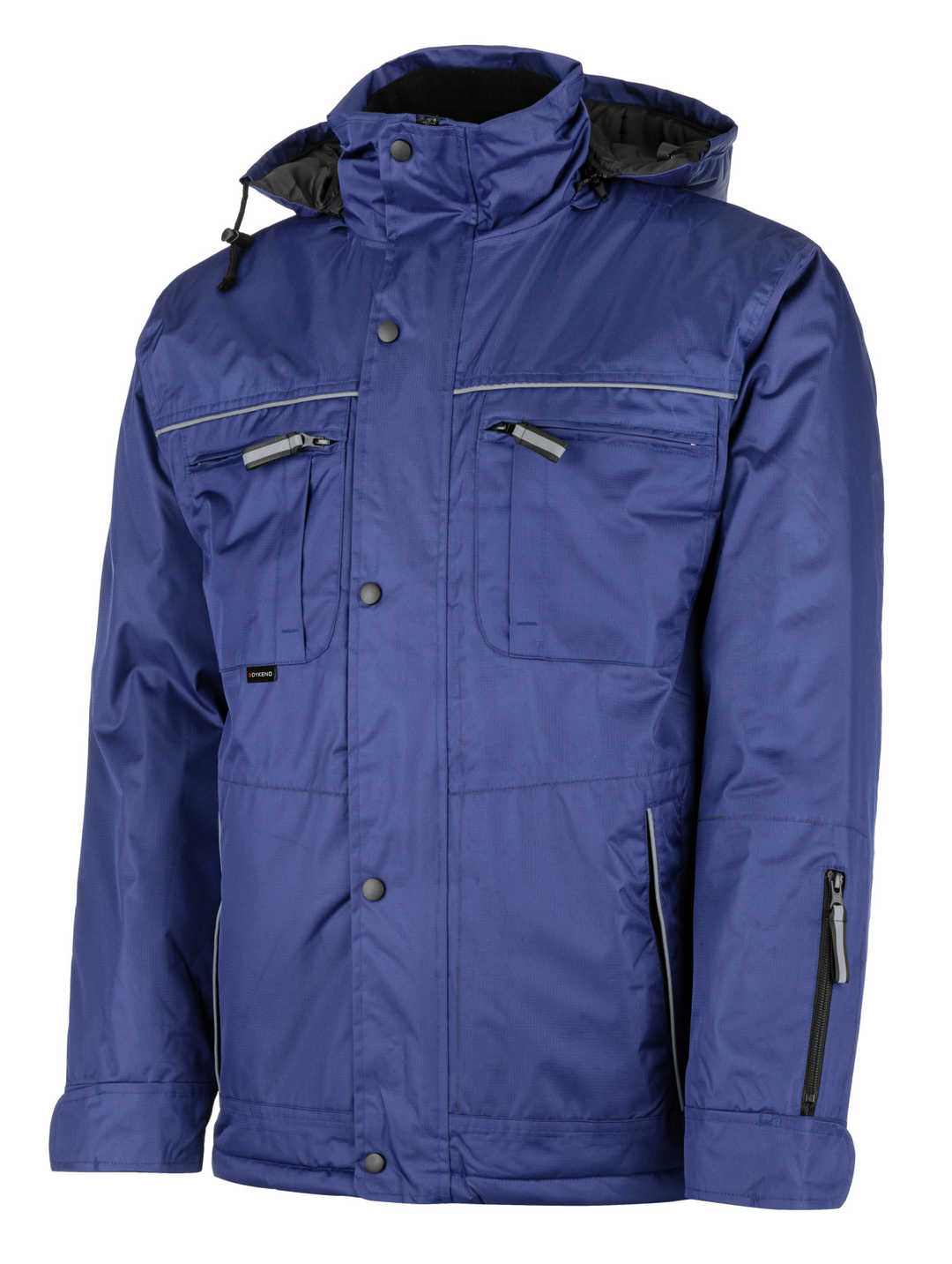 Nepromokavá zateplená bunda s odepínací kapucí. 100% polyester povrstvený PVC. Náprsní kapsy + náprsní kapsa na mobil, kapsa na rukávu. Zapínání zimní bundy je na zip s překrytím s knoflíky. Vnitřek bundy je zateplený microfleecem včetně límce. Manžety rukávů regulovatelné suchým zipem. Regulovatelná stahovací elastická guma v pase. Pro vyšší viditelnost má bunda reflexní doplňky. Konce rukávy jsou stahovatelné pomocí suchého zipu.nepromokavá zateplená bundaodepínací kapucenáprsní kapsy + náprsní kapsa na mobilzapínání na zip krytý légou se zapínáním na patenty (druky)vnitřní potažení microfleecem včetně límcemanžety rukávů regulovatelné suchým zipemregulovatelná stahovací elastická guma v pasereflexní doplňkylehká, prodyšná a pohodlná při nošeníVelikosti: S - 3XLBarva: tmavě modráMateriál: 100% polyester povrstvený PVC, 230 g/m2EN ISO 13688EN 343: 3/1