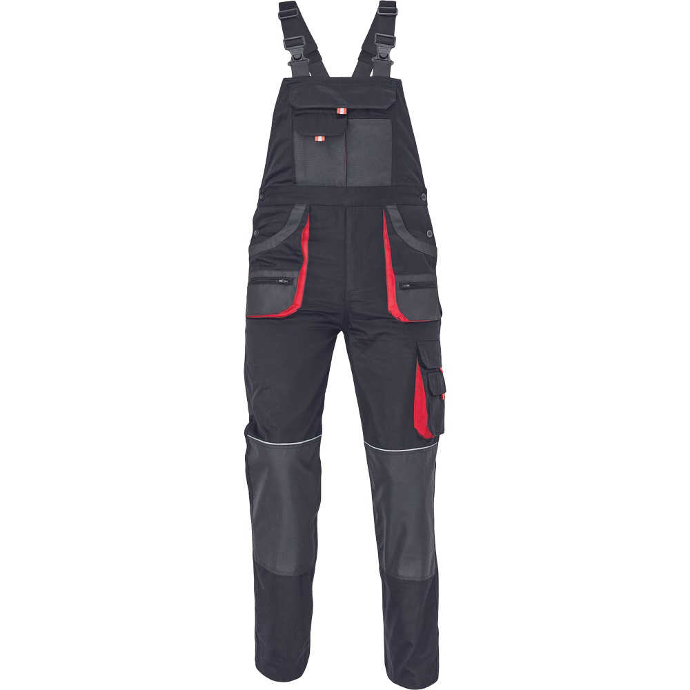 pánské bavlněné pracovní kalhoty s laclem; 7 funkčních kapes; oboustranné zapínání v pase na knoflíky; polyester Oxford zesílení v kolenních částech s možností vkládání ochranných nákoleníků; nastavitelná délka nohavic.