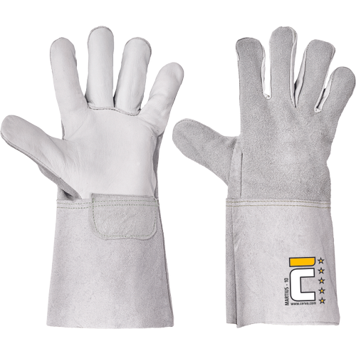 Popis: Rukavice z hovězí štípenky, buvolí lícovka na dlani pro zvýšení komfortu a lepší úchop, šité kevlarovou nití, svářecí kategorie B. EN 12477+A1