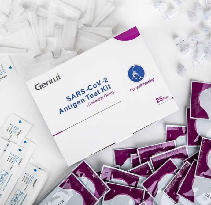 Antigenní testovací sada na bázi koloidního zlata pro testování na přítomnost viru Sars-Cov-2 způsobujícího onemocnění Covid-19. Určeno Ministerstvem zdravotnictví ČR k testování na školách. Výtěr z přední části nosu. Výsledek do 15 minut. Vhodné především pro děti, seniory či osoby se zdravotním postižením. Pro samotestování i profesionální použití.Testovací sada identifikuje vešekeré dosud známe mutace viru Sars-Cov-2. Výtěr z přední části nosu v max. hloubce 2,5 cm je šetrný, pohodlný a přitom zcela účinný způsob testování. Samotné testování je velmi jednoduché i pro naprosté laiky, navíc je k dispozici jasný návod opatřený instruktážními obrázky. Nejpozději do 15 minut od získání vzorku zjistíte výsledek. Po ukončení testu nezapomeňte vložit všechny součásti do přiloženého uzavíratelného sáčku. Ten pečlivě uzavřete a vyhoďte do koše. Rychlý antigenní test Genrui vhodný pro použití ve školách, ve firmách, na sportovištích a v dalších institucích. Využívá metodu na bázi koloidního zlata a odečítá se pouhým okem. Provádí se výtěrem z přední části nosu. Snadno a rychle zjistí přítomnost viru SARS-CoV-2 způsobujícího onemocnění Covid-19. Určen Ministerstvem zdravotnictví ČR k testování na školách.Tento test má následující parametry spolehlivosti: Specificita - 100 % Senzitivita - 98,13 %Pro provádění testu není zapotřebí proškolené osoby, obsluha je uživatelsky nenáročná, ideální pro samotestování.Vhodné pro použití u dětí, seniorů či osob se zdravotním postižením.Test splňuje kritéria certifikace CE. Je také plněv souladu s legislativou a lze jej i od 1. 7. 2021 používat pro samotestování i profesionální použití bez omezení.