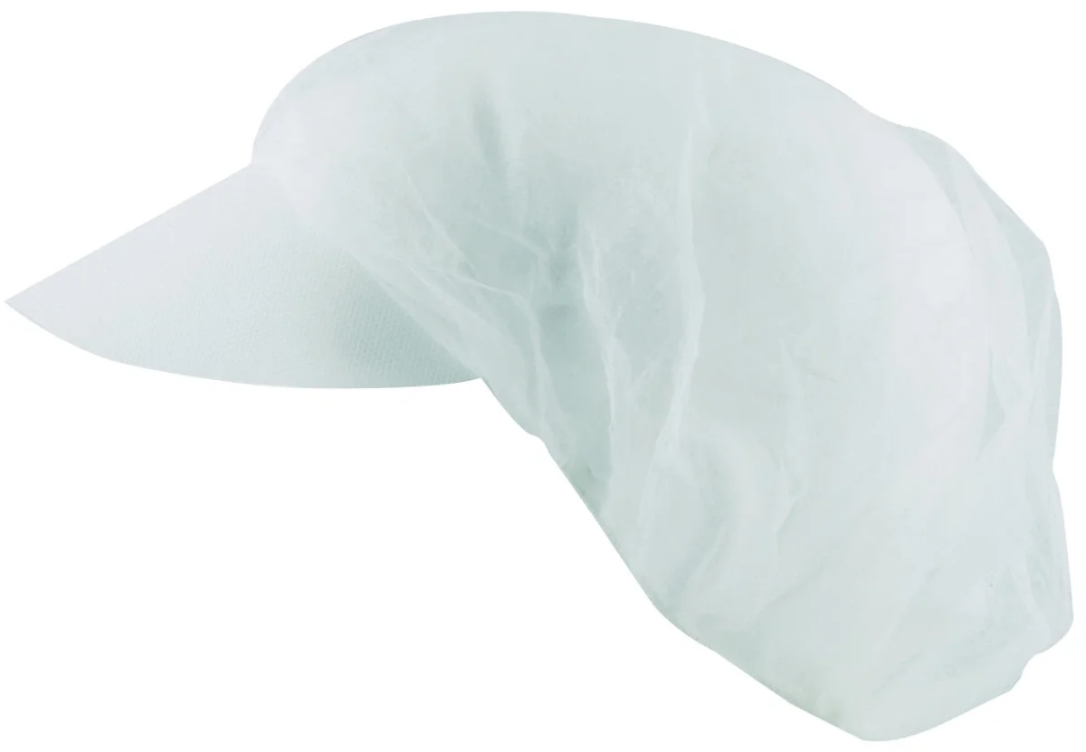 • bílá jednorázová čepice s kšiltem