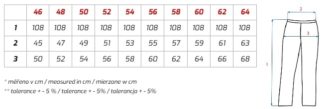 Pánské ochranné kalhoty se zatkanou vodivou mřížkoua ESD vlastnostmi. Uhlíkové vlákno tkané přes látku poskytuje vynikající ochranu proti statické elektřině. Pas s poutky na opasek a gumou v bocích, boční kapsa na svinovací / skládací metr, zadní kapsa s klopou, reflexní doplňky. Doporučené použití: výbušná prostředí, manipulace s řídícími jednotkami, polovodiči, plošnými spoji a obecně s elektronicky citlivými součástkami.