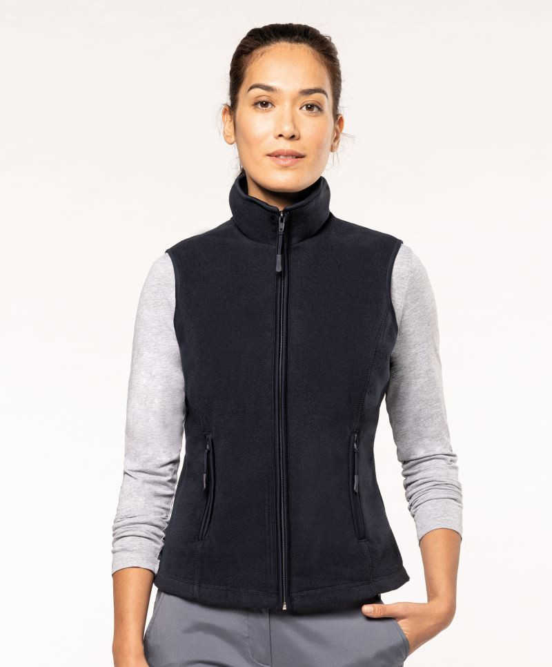 Popis: dámská mírně zúžená fleecová vesta. Vesta má stojáček a 2 boční kapsy na zip.