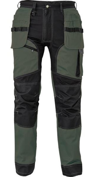 Popis: pánské pracovní kalhoty z elastického materiálu; 2 postranní kapsy a 2 vložitelné multifunkční kapsy na nářadí; "D" kroužek; 1 boční kapsa na nohavici s patkou; 1 kapsa na nohavici na zip; 2 nakládané zadní kapsy s patkou; zesílená oblast kolen s možností; vkládání kolenních výztuh; záložka na nohavici umožňující prodloužení délky až o 5 cm; zesílená zadní strana spodku nohavice; dekorativní prošití