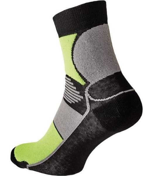 Popis: univerzální ponožky vhodné jak pro pracovní tak sportovní či volnočasové využití; kombinace použitých materiálů zajišťuje komfort celodenního nošení; elastická bandáž v oblasti nártu zabraňuje posunutí ponožky v botě; jemný svěr horního lemu; atraktivní design s použitím fluorescentních barev ladící s kolecí Knoxfield