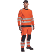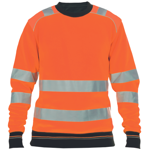 Popis: pánská HI-VIS mikina s kulatým průkrčníkem z počesaného výplňku směsi polyesteru a bavlny; kontrastní proužky v nápletech rukávů a spodním lemu; dvojice reflexních pruhů po obvodu pasu a rukávů a přes ramena; dekorativní prošití v HI-VIS barvě.